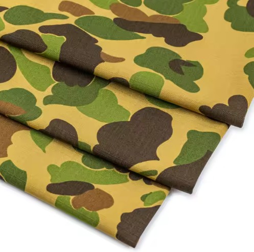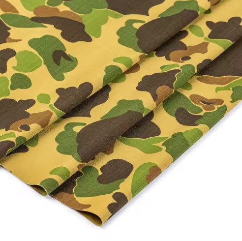 Art Number: S1-2500037# Item name:camo duck canvas fabric Composition: 65%cotton35%polyester Weight: 220GSM Width:57/58" Yarn count:20s * 16s